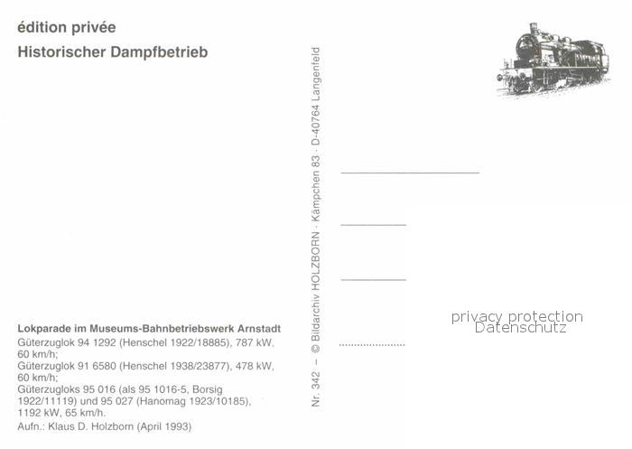 72793302 Arnstadt Ilm Lokparade im Museum Bahnbetriebswerk postalisch nicht gelaufen Erhaltung siehe scans [LiesaD40] KatCode: 11110016070004