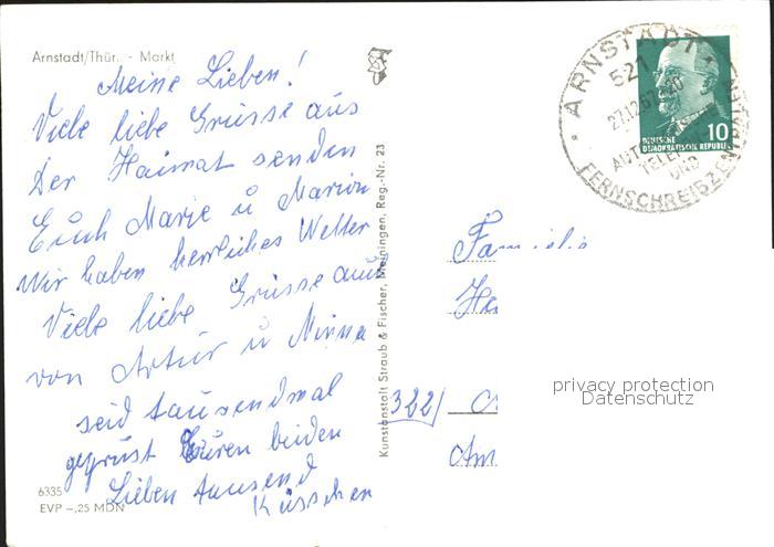 72026992 alte Postkarte Arnstadt Ilm Markt postalisch gelaufen Erhaltung siehe scans KatCode: 11110016070004