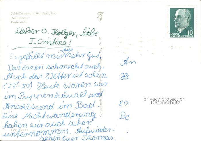 72117487 alte Postkarte Arnstadt Ilm Mon plaisir Klosterkueche postalisch gelaufen Erhaltung siehe scans KatCode: 11110016070004