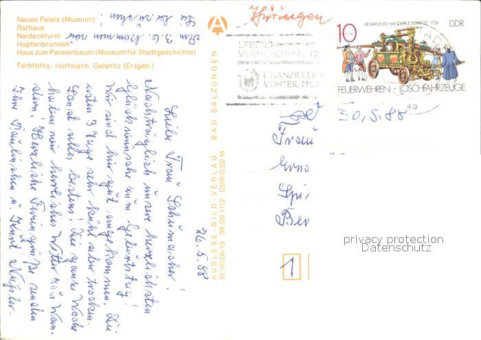 72263563 alte Postkarte Arnstadt Ilm Museum Neues Palais Rathaus Neideckturm Hopfenbrunnen Haus zum Plamenbaum postalisch gelaufen Erhaltung siehe scans KatCode: 11110016070004
