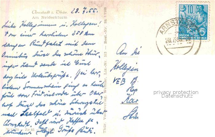 72728688 alte Postkarte Arnstadt Ilm Neideckturm postalisch gelaufen Erhaltung siehe scans [FriedD77] KatCode: 11110016070004