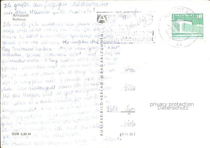 72255001 alte Postkarte Arnstadt Ilm Rathaus postalisch gelaufen Erhaltung siehe scans KatCode: 11110016070004