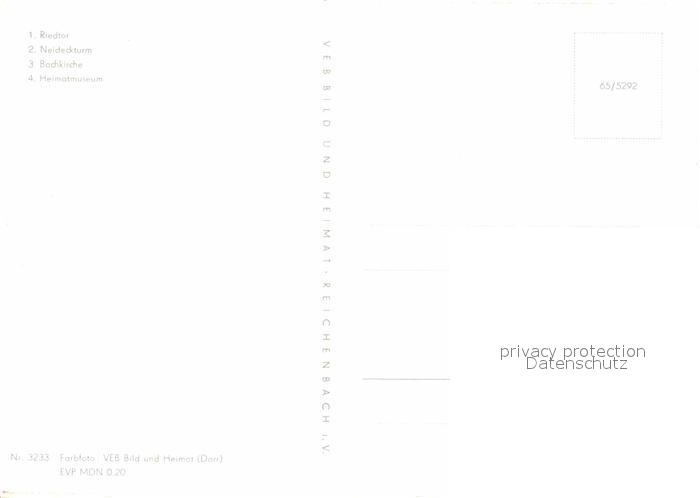 72919592 Arnstadt Ilm Riedtor Neideckturm Bachkirche Heimatmuseum postalisch nicht gelaufen Erhaltung siehe scans [FriedD77] KatCode: 11110016070004