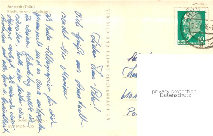 73369585 alte Postkarte Arnstadt Ilm Riedturm Jakobsturm postalisch gelaufen Erhaltung siehe scans [KathaD81] KatCode: 11110016070004