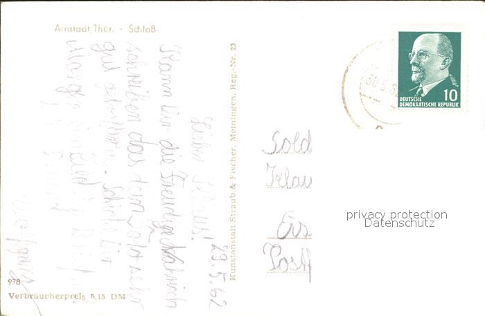 72272391 alte Postkarte Arnstadt Ilm Schloss postalisch gelaufen Erhaltung siehe scans KatCode: 11110016070004