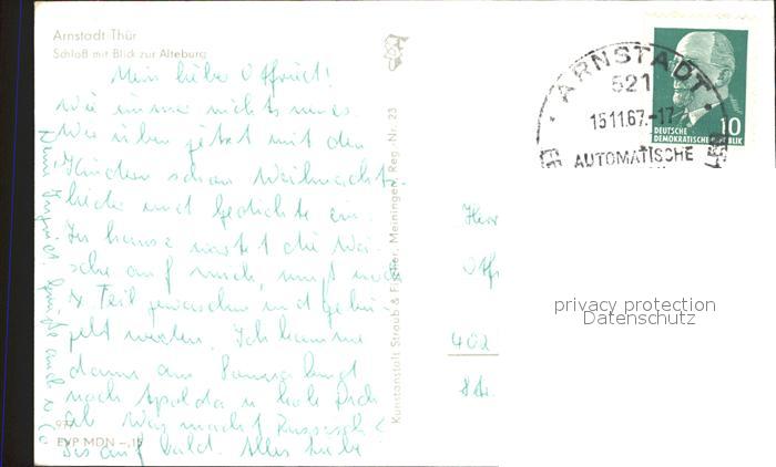 71918693 alte Postkarte Arnstadt Ilm Schloss postalisch gelaufen Erhaltung siehe scans KatCode: 11110016070004