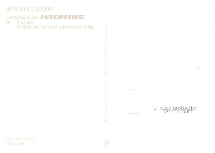 73162554 Arnstadt Ilm Schlossruine Neideck und Neues Palais Luftbildserie der Interflug postalisch nicht gelaufen Erhaltung siehe scans [FriedD77] KatCode: 11110016070004