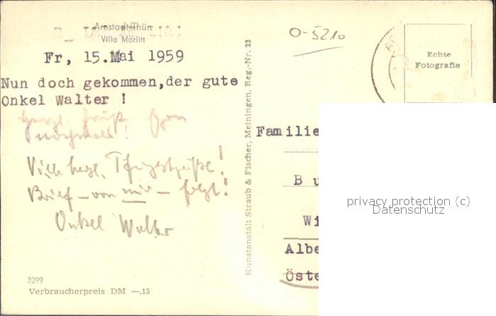 41423363 alte Postkarte Arnstadt Ilm Villa Marlitt postalisch gelaufen Erhaltung siehe scans KatCode: 11110016070004
