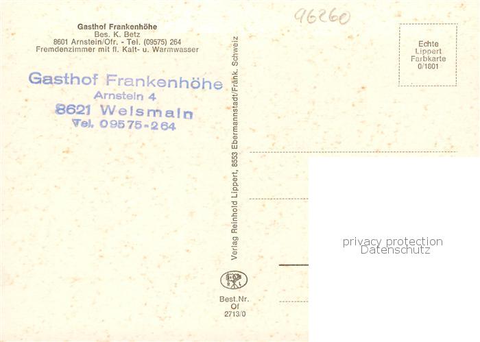 73863612 Arnstein Oberfranken Gasthof Frankenhoehe postalisch nicht gelaufen Erhaltung siehe scans [WerneD78] KatCode: 11110009478176