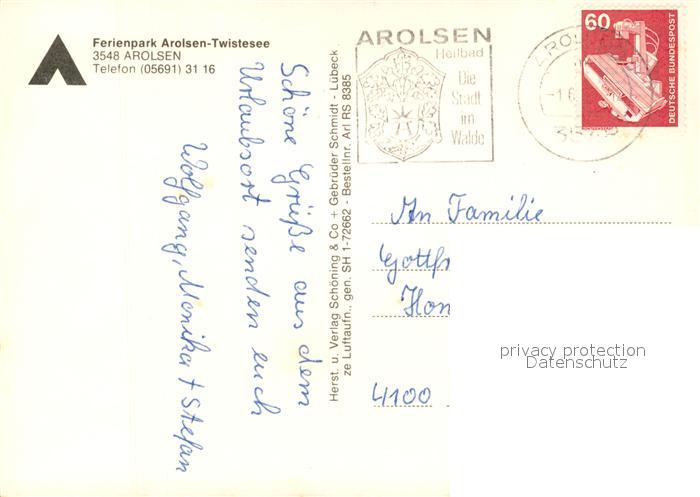 73312184 alte Postkarte Arolsen Bad Fliegeraufnahme Ferienpark Arolsen-Twistesee postalisch gelaufen Erhaltung siehe scans [NatalD47] KatCode: 11110006635002