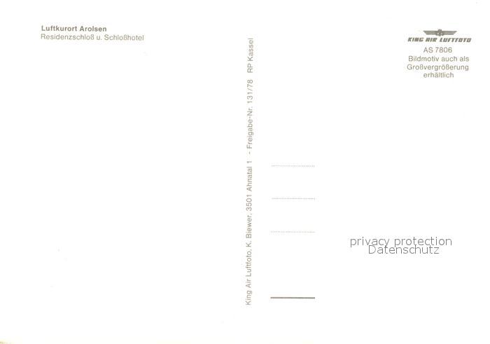 73201619 Arolsen Bad Fliegeraufnahme Residenzschloss Schlosshotel postalisch nicht gelaufen Erhaltung siehe scans [KathaD81] KatCode: 11110006635002