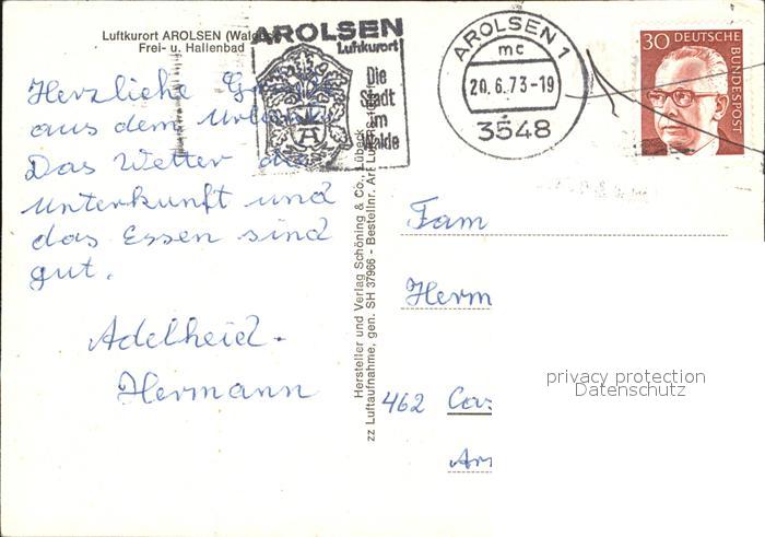 72481802 alte Postkarte Arolsen Bad Frei Hallenbad postalisch gelaufen Erhaltung siehe scans KatCode: 11110006635002