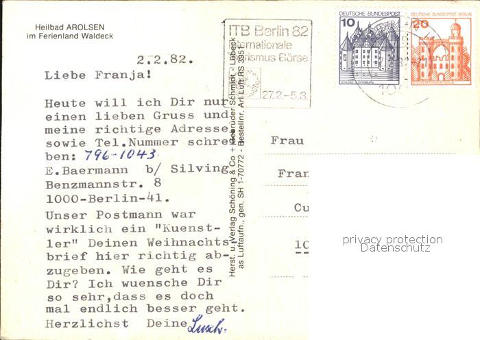 72600428 alte Postkarte Arolsen Bad Heilbad im Ferienland Waldeck Fliegeraufnahme postalisch gelaufen Erhaltung siehe scans [FriedD77] KatCode: 11110006635002