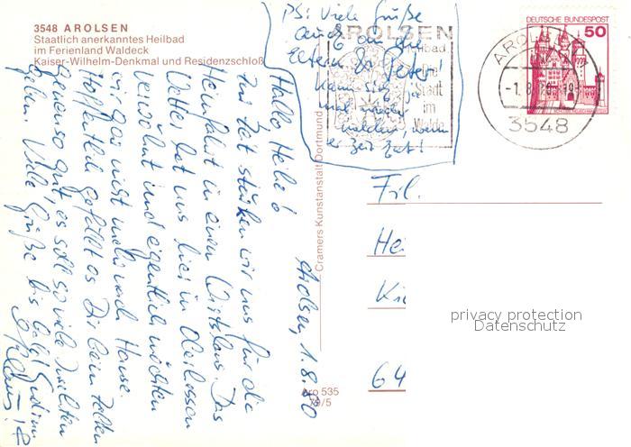 73201620 alte Postkarte Arolsen Bad Kaiser Wilhelm Denkmal Residenzschloss postalisch gelaufen Erhaltung siehe scans [KathaD81] KatCode: 11110006635002
