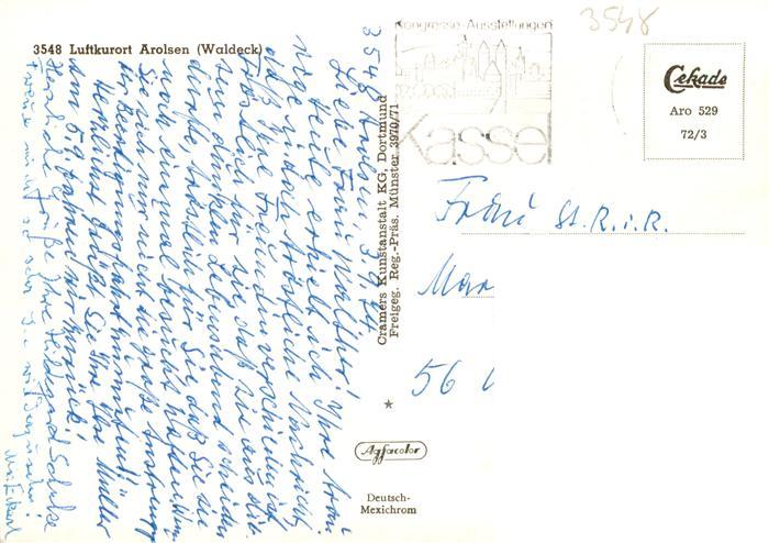 73938779 alte Postkarte Arolsen Bad Panorama Luftkurort postalisch gelaufen Fliegeraufnahme Erhaltung siehe scans [FriedD77] KatCode: 11110006635002