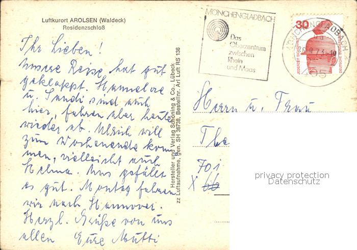 72476687 alte Postkarte Arolsen Bad Residenzschloss Fliegeraufnahme postalisch gelaufen Erhaltung siehe scans KatCode: 11110006635002