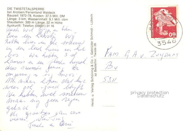 72939536 alte Postkarte Arolsen Bad Twistetalsperre postalisch gelaufen Erhaltung siehe scans [WerneD78] KatCode: 11110006635002