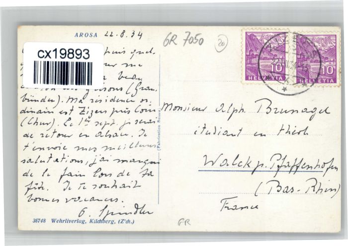 10738029 alte Postkarte Arosa GR Arosa postalisch gelaufen KatCode: 11470100345296