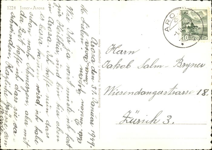 10723317 alte Postkarte Arosa GR Arosa postalisch gelaufen KatCode: 11470100345296