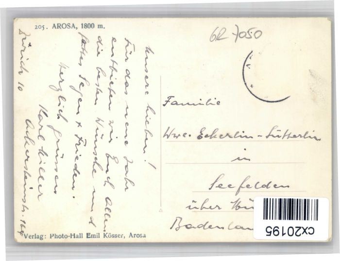 10738035 alte Postkarte Arosa GR Arosa postalisch gelaufen KatCode: 11470100345296