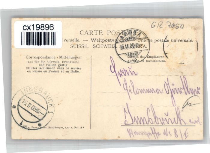 10738032 alte Postkarte Arosa GR Arosa Postplatz postalisch gelaufen KatCode: 11470100345296