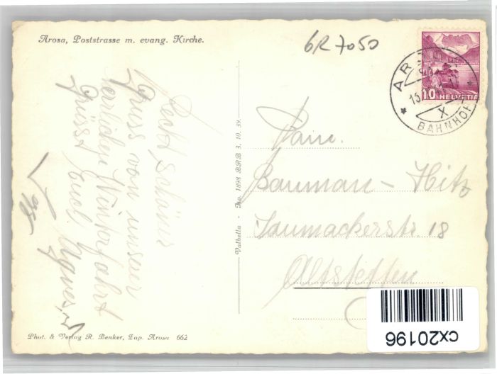 10738036 alte Postkarte Arosa GR Arosa Poststrasse Kirche postalisch gelaufen KatCode: 11470100345296