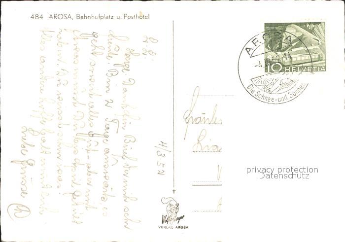 11631106 alte Postkarte Arosa GR Bahnhofplatz und Posthotel postalisch gelaufen Erhaltung siehe scans KatCode: 11470100345296