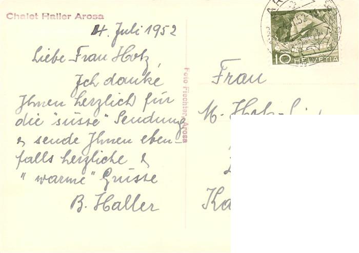 13870386 alte Postkarte Arosa GR Chalet Haller postalisch gelaufen Erhaltung siehe scans [FriedD77] KatCode: 11470100345296
