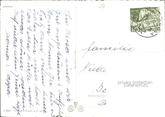 11632749 alte Postkarte Arosa GR Dorfpartie im Schnee postalisch gelaufen Erhaltung siehe scans KatCode: 11470100345296