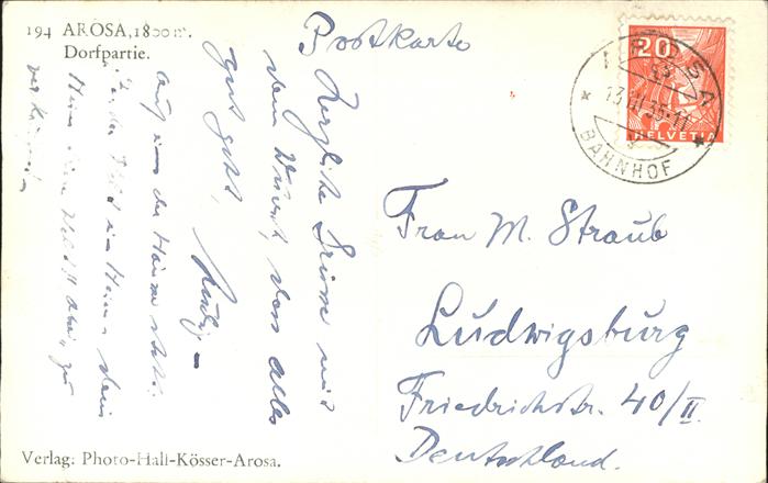 11379712 alte Postkarte Arosa GR Dorfpartie im Winter postalisch gelaufen gute Erhaltung KatCode: 11470100345296