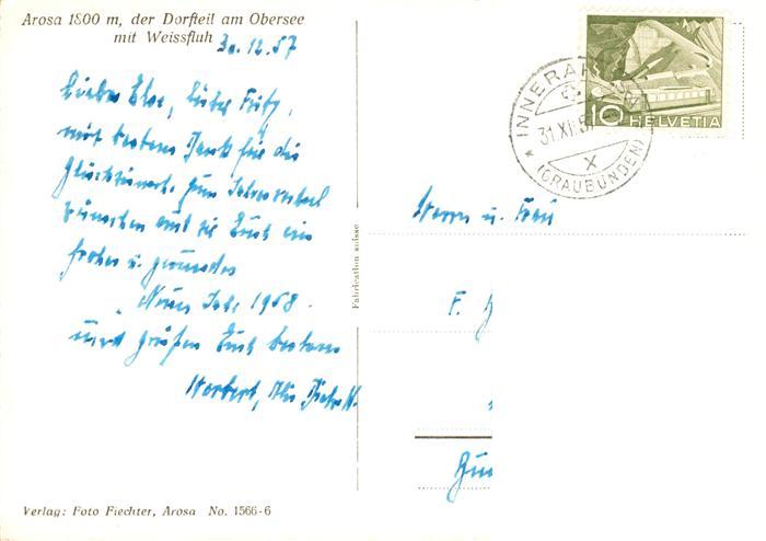13908745 alte Postkarte Arosa GR Dorfteil am Obersee postalisch gelaufen Erhaltung siehe scans [FriedD77] KatCode: 11470100345296