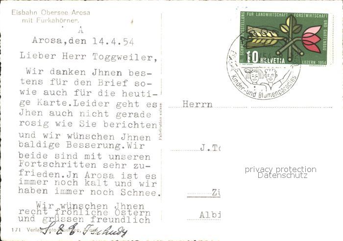 11649097 alte Postkarte Arosa GR Eisbahn Obersee postalisch gelaufen Erhaltung siehe scans KatCode: 11470100345296