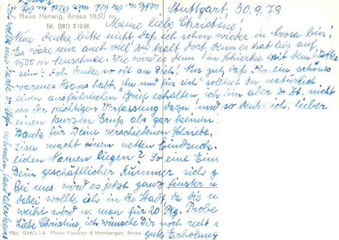 13863800 Arosa GR Gaestehaus Pension Haus Herwig postalisch nicht gelaufen Erhaltung siehe scans [FriedD77] KatCode: 11470100345296