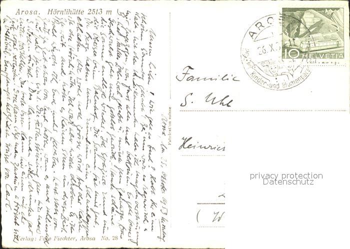 11632529 alte Postkarte Arosa GR Hoernlihuette postalisch gelaufen KatCode: 11470100345296