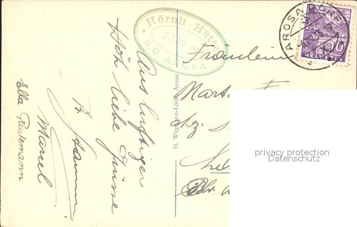 12029798 alte Postkarte Arosa GR Hoernlihuette Berghaus postalisch gelaufen Erhaltung siehe scans KatCode: 11470100345296