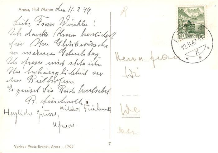 13883723 alte Postkarte Arosa GR Hof Maran Panorama postalisch gelaufen Erhaltung siehe scans [FriedD77] KatCode: 11470100345296
