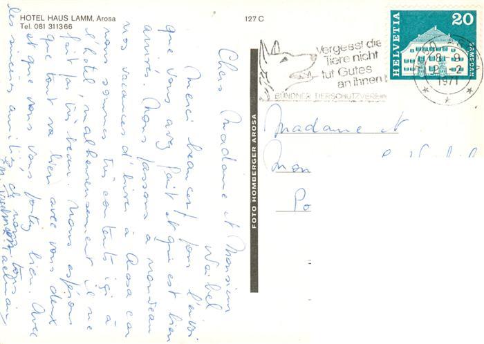 13883730 alte Postkarte Arosa GR Hotel Haus Lamm postalisch gelaufen Erhaltung siehe scans [FriedD77] KatCode: 11470100345296