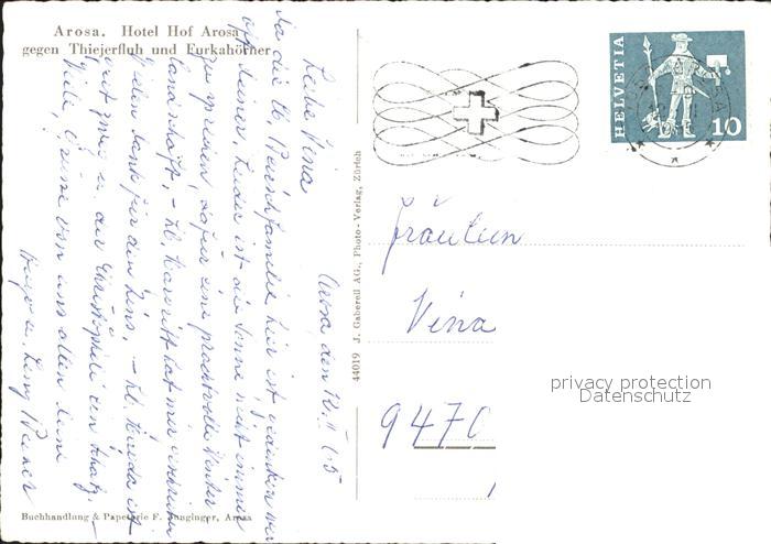 11632765 alte Postkarte Arosa GR Hotel Hof Arosa mit Furkahoerner postalisch gelaufen KatCode: 11470100345296