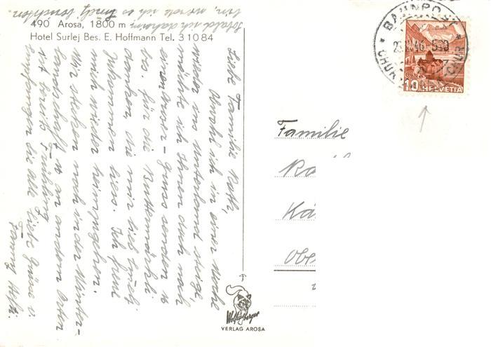 13883710 alte Postkarte Arosa GR Hotel Surlej postalisch gelaufen Erhaltung siehe scans [FriedD77] KatCode: 11470100345296