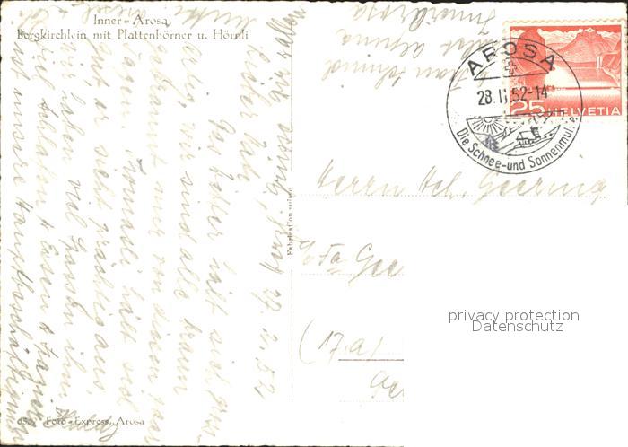 11655781 alte Postkarte Arosa GR Inner Arosa Bergkirchlein Plattenhoerner postalisch gelaufen KatCode: 11470100345296