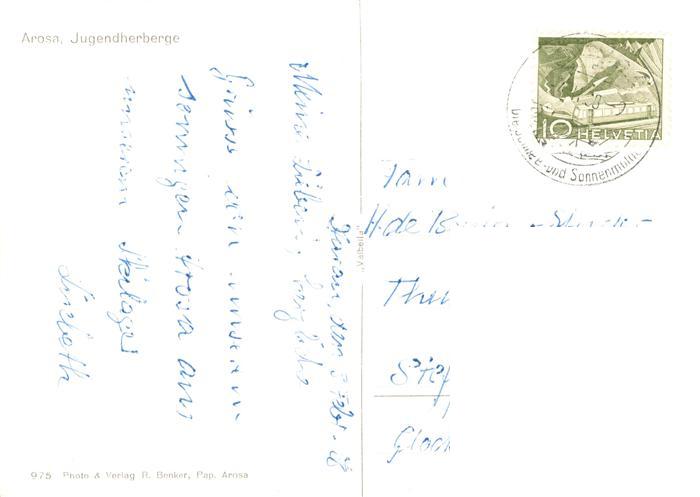 13874839 alte Postkarte Arosa GR Jugendherberge Kirche postalisch gelaufen Erhaltung siehe scans [WerneD78] KatCode: 11470100345296