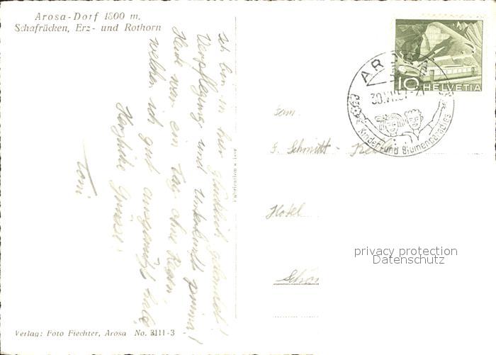 11637712 alte Postkarte Arosa GR mit Schafruecken Erz und Rothorn postalisch gelaufen KatCode: 11470100345296