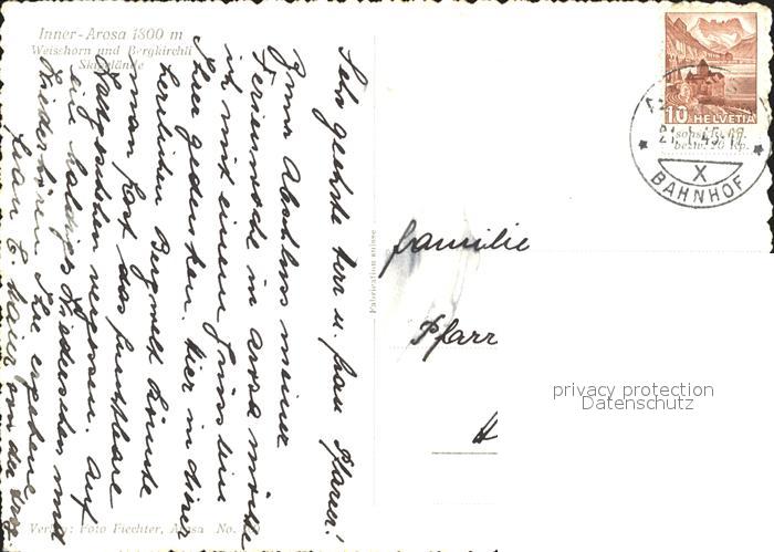 11637651 alte Postkarte Arosa GR mit Weisshorn und Bergkirchli Skigebiet postalisch gelaufen Erhaltung siehe scans KatCode: 11470100345296