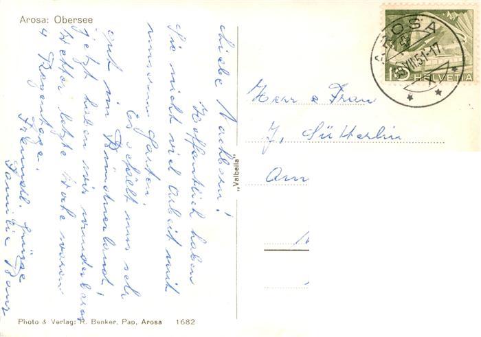 13901672 alte Postkarte Arosa GR Obersee Fliegeraufnahme postalisch gelaufen Erhaltung siehe scans [WerneD78] KatCode: 11470100345296