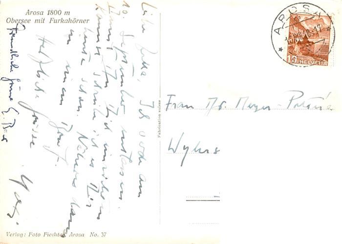 13901661 alte Postkarte Arosa GR Obersee mit Furkahoerner postalisch gelaufen Erhaltung siehe scans [WerneD78] KatCode: 11470100345296