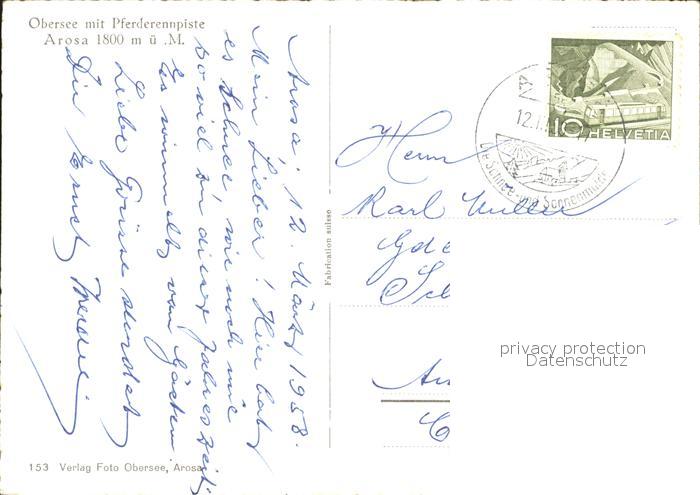 11651315 alte Postkarte Arosa GR Obersee mit Pferderennpiste postalisch gelaufen Erhaltung siehe scans KatCode: 11470100345296