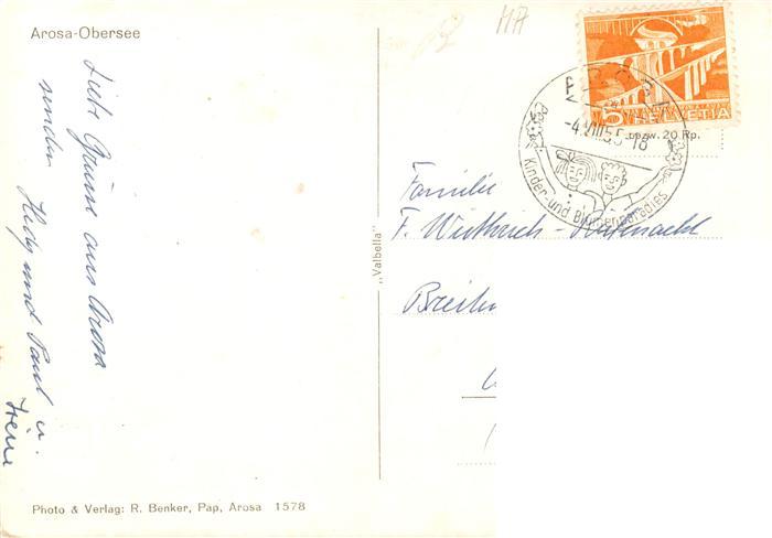 13871441 alte Postkarte Arosa GR Obersee postalisch gelaufen Erhaltung siehe scans [WerneD78] KatCode: 11470100345296