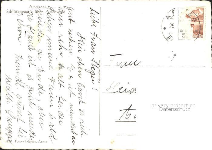 11635669 alte Postkarte Arosa GR Pferde Schlittenpartie ueber Arlenwald postalisch gelaufen Erhaltung siehe scans KatCode: 11470100345296