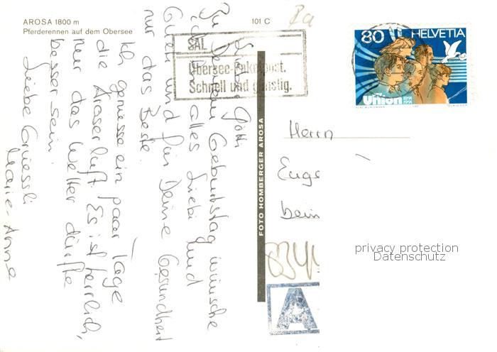 13865729 alte Postkarte Arosa GR Pferderennen auf dem Obersee Wintersportplatz Alpen postalisch gelaufen Erhaltung siehe scans [FriedD77] KatCode: 11470100345296