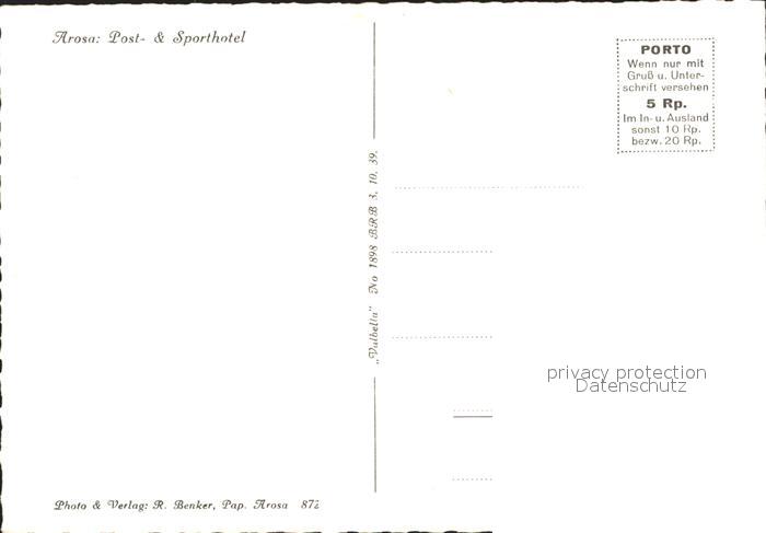 11631053 Arosa GR Post und Sporthotel postalisch nicht gelaufen Erhaltung siehe scans KatCode: 11470100345296